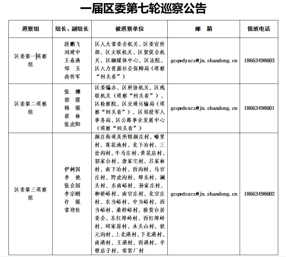 经区委批准,一届区委第七轮巡察共组建3个巡察组,利用3个月时间,分别对颜庄街道党工委及所辖38个村(居)、区人大常委会机关等10个区直部门单位党组织开展常规巡察;对区残联机关等4个区直部门单位党组织开展巡察“回头看”。